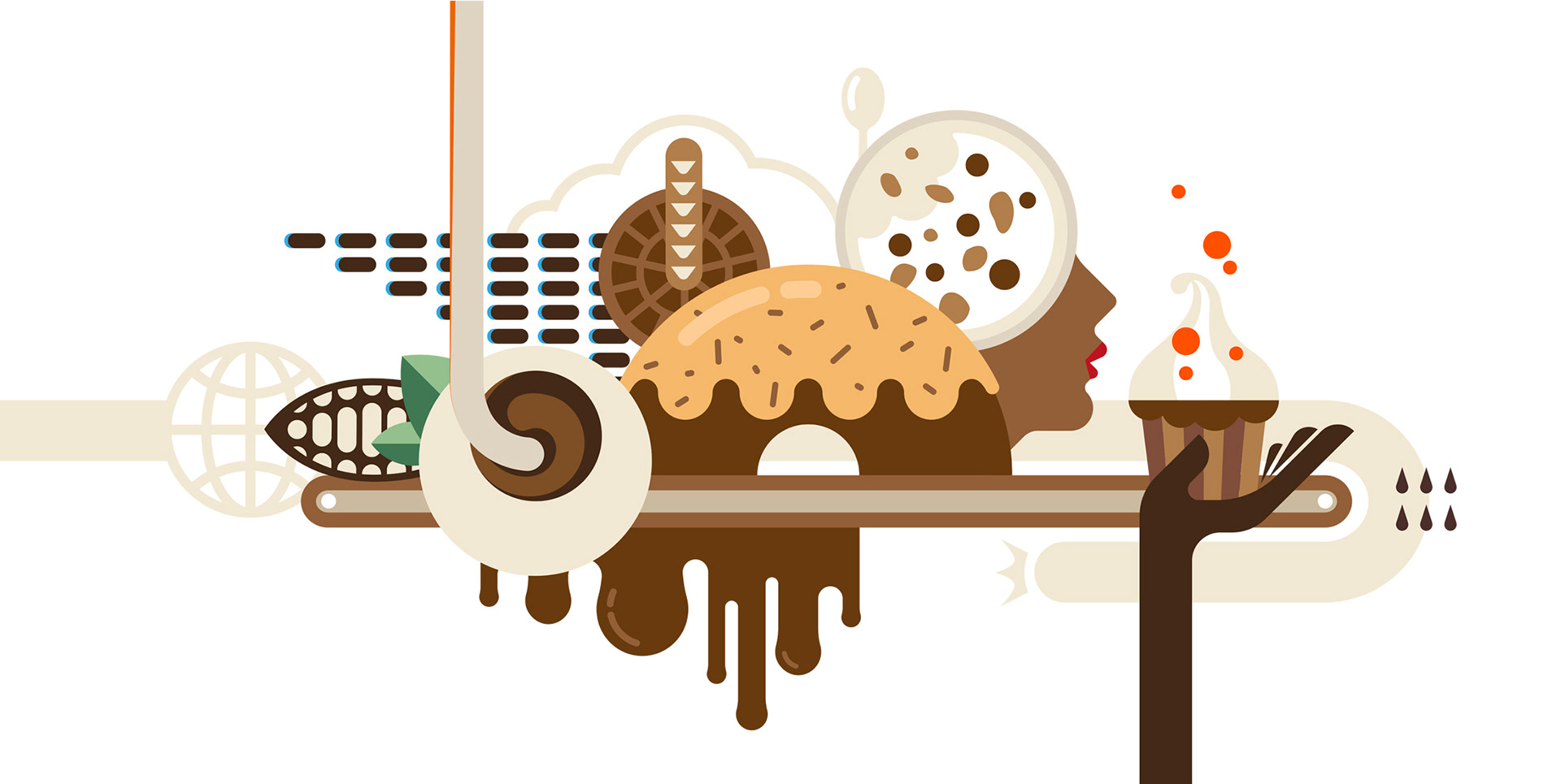 Deze keyvisual is gemaakt voor Delicia, een fabrikant met een groot assortiment aan chocoladeproducten. Een illustratie waarmee Delicia zich gaat onderscheiden in de wereld van chocolade.